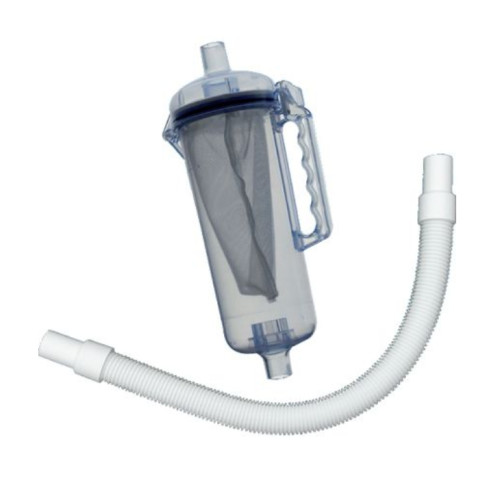 Inline leaf trap canister to trap leaves, large debris...and even the odd frog! Traps the debris in a mesh bag within the canister to prevent it from reaching and clogging pipework and filtration equipment. A vital piece of maintenance kit for pools surrounded by trees.